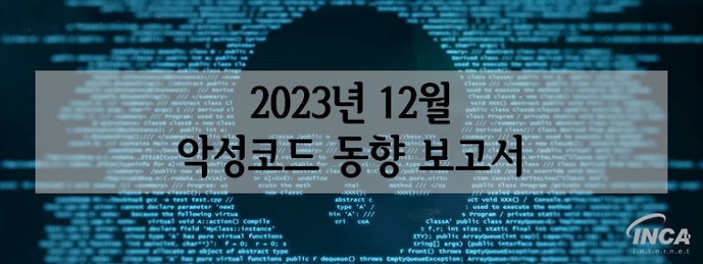 2023년 12월(12월 1일 ~ 12월 31일) 한 달간 등장한 악성코드를 조사한 결과, 디버거 회피와 포렌식 방지 기능이 추가된 "P2PInfect" 봇넷의 변종이 발견됐다. 또한, 시스템의 정보를 탈취하는 "MrAnon Stealer" 악성코드와 "JaskaGo" 악성코드가 알려졌다. 이 외에도 Android 사용자를 공격하는 "Chameleon" 악성 앱과 국제 수사 기관에 의해 "BlackCat" 랜섬웨어의 사이트가 압수된 정황이 포착됐다.