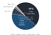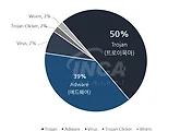 8월 한달 간 탐지된 악성코드를 유형별로 비교하였을 때 Trojan(트로이목마)와 Adware(애드웨어)가 각각 47%, 40%로 가장 높은 비중을 차지하였고, Virus(바이러스)가 9%, Trojan-Downloader(트로이목마-다운로더)와 Abuse-Worry가 각각 2%, 1%로 그 뒤를 따랐다.