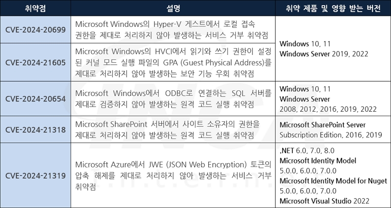Microsoft 사는 제품에서 발생하는 취약점에 대한 보안 업데이트를 발표하고, 관련 취약점을 해결하기 위해 최신 버전으로 업데이트할 것을 권고하였다.