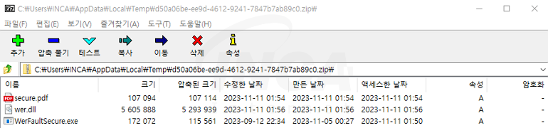 - wer.dll : WerFaultSecure.exe 실행 시 사이드 로딩되는 악성 DLL 파일