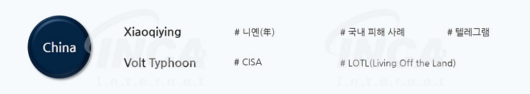 1분기에도 중국 해커 그룹의 국내 및 해외 공격 사례가 발견됐다. Xiaoqiying 출신의 해커가 국내 기관을 수차례 공격했으며, Volt Typhoon 해커 그룹은 미국의 주요 인프라에 침투해 5년간 발견되지 않은 정황이 전해졌다.
