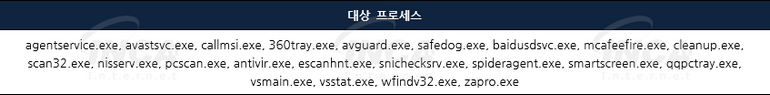 EDR 종료 모듈은 호스트에서 실행 중인 프로세스와 [표 2]을 포함한 1,660개의 프로세스 이름을 비교해 EDR 프로세스를 검색한다.