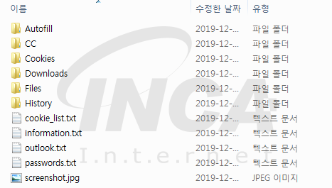 PDF 아이콘으로 위장한 파일 실행 시 사용자 PC, 브라우저, 코인 지갑, 스크린샷 정보를 수집 후 저장한다.