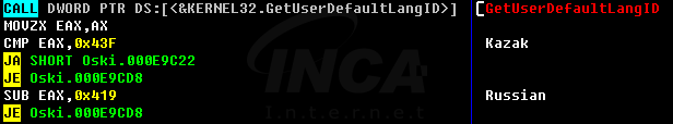 “Oski Stealer” 실행 시, 사용자 PC의 시스템 언어를 확인하여 악성 행위 실행 여부를 결정한다. 만약 시스템 언어가 [표 1]의 목록과 일치한다면 악성 동작 없이 종료된다.