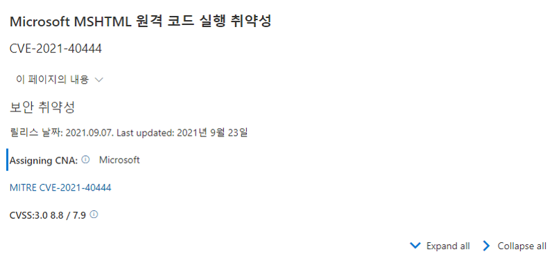 지난 9월 Microsoft에서 MSHTML 원격 코드 실행 취약점인 CVE-2021-40444를 발표 및 패치 하였다. MSHTML은 Microsoft Windows 버전의 Internet Explorer용 브라우저 엔진으로, 이 취약점은 Internet Explorer와 Office 문서 프로그램에서 동작한다. MS의 발표 이후, 10월과 11월에 CVE-2021-40444 취약점을 활용한 다양한 악성 공격이 발견되었는데, 그 중 북한으로 추정되는 피싱 캠페인이 다량 발견되었다.