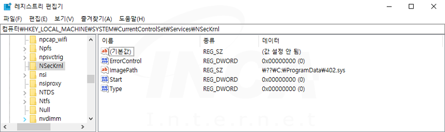 드라이버 드롭 이후에는 서비스 관련 레지스트리에 키를 생성하고 서비스 타입을 임의의 값인 0으로 임시 설정한 뒤 NtLoadDriver 함수를 실행하며 드롭한 드라이버를 로드한다. 그리고 드라이버로 프로세스를 종료한 뒤에는 생성한 레지스트리 경로를 삭제하며 드라이버 로드 흔적을 없앤다.