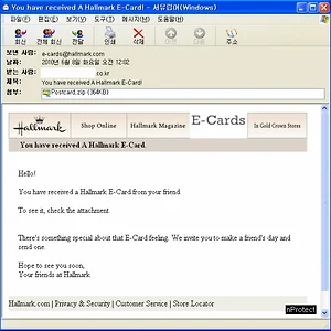 가짜바이러스1 [주의]Postcard from Hallmark 허위 보안 정보 확산 중 1. 개요 잉카인터넷 시큐리티 대응센터 대응팀에서는 2012년 01월 06일 국내의 많은 이용자들의 이메일로 허위 악성파일 보안 정보가 급속히 퍼지고 있는 것을 확인하였다. 이러한 정보는 실제 존재하지 않거나, 과장된 내용 등으로 사용자로 하여금 마치 치명적인 악성파일이 전파 중이거나, 공신력이 있는 기관 및 보안회사에서 경고한 것처럼 위장하고 있다. 일반적으로 가짜(허위) 바이러스 정보라는 종류로 구분되며 "Hoax" 라는 명칭으로 사용된다. 이메일, 메신저, SNS 등으로 이러한 내용을 수신하게 되면 다른 사람에게 또 다시 전파를 하지 않도록 하며, 신뢰할 수 있는 보안 업체에 정확한 사실 확인을 하는 것이 필요하다. ━━━━━━━━━━━━━━━━━━━━━━━━━━━━━━━━━━━━━━━━━━━━━━.. 2012. 1. 6. 이전 1 다음
